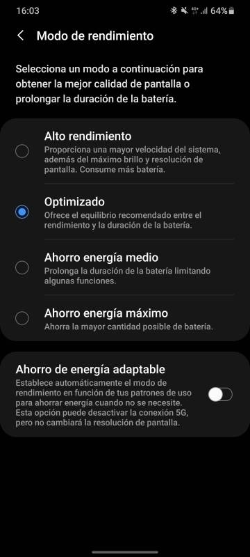 Lo tengo actualizado. Good. Play store, actualizaciones en manual. Tb lo tengo. Quitar mierda. No se puede. Si tuvieras Samsung sabrías que esto no es posible. Poner un modo de ahorro. Ahorro light??? Lo siento, me imagino que te habrás equivocado, pero en Samsung no hay ningún modo que se llame así. Pero estaría bien, que especificaras más sobre esto. Porque además estos modos de ahorro son configurables, como tu bien sabes. Podrías indicar que parámetros tocar. Recomiendas el adaptable? A ver si puedes extenderte y hacer un tuto pero para niveles algo más avanzados, que lo que has puesto es muy muy básico e impreciso. ![]() Y el modo ahorro light, si quieres entenderme me entiendes, es el moderado, desactiva el always on display y pon la CPU a 70% que no necesitas más a no ser que juegues a juegos pesados. El brillo tampoco hace falta que lo pongas para quedarte ciego. Y lo del adaptable, no, por lo que he leído, no ahorra mucho, mejor el moderado. |