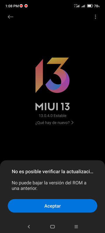 tengo un error yo instale la version de android 12 de china por desesperado xd y me esta dando muchos errores y baje una rom de android 11 y me sale este error: No es posible verificar la actualizacion..., no puede bajar la version del ROM a una anterior