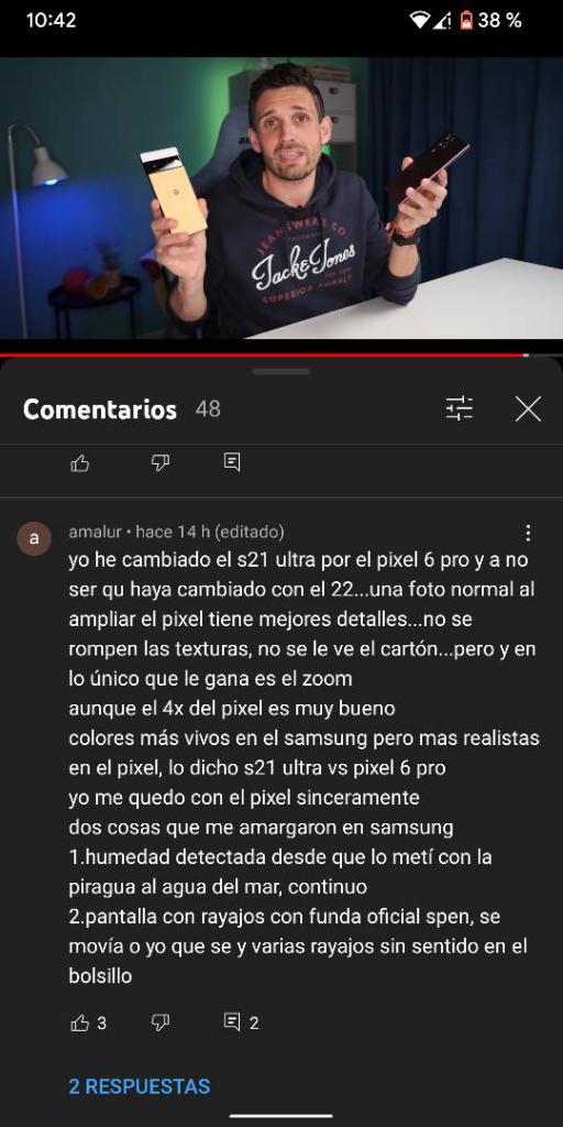 Ese no es el video del Rincón de China donde comparaba el Pixel 6 Pro que es su móvil de uso diario con el S22U?. Pero has visto la comparativa o cuando has visto algo que no te a parecido te has bajado a los comentarios? , por qué precisamente en esa comparativa no puedo decir que el Pixel tenga mejores cámaras