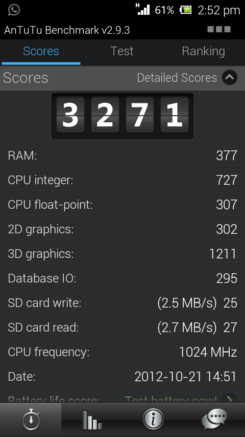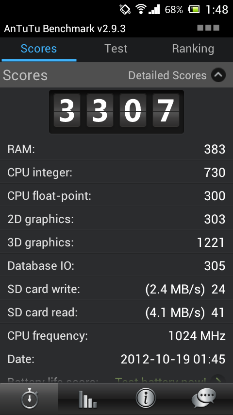 Me sacó esos 2 buenos puntajes en Antutu Benchmark, uno haciendole test completo y otro quitando la opcion de test a la tarjeta SD. La Bateria me duró 5 horas con unos cuantos minutos más pero full dandole mucho uso seguido a mi Xperia conectado a Wi-Fi y datos, pantalla encendida practicamente seguida y todo ese tiempo. Estoy usando los Drivers Adreno de Xperia S, los ultimos drivers adreno que hay ha la fecha y estoy usando el Supremacy Script V2 tambien. Por ahora probando esta gran rom y me ha encantado todo, por cierto si tienen la pantalla bloqueada solo basta darle al boton de camara y ella se desbloqueara automaticamente y te lanzara a la aplicacion camara! ![]() Por cierto se me olvido comentar que en esta Rom no es necesario instalar fix ni nada para el teclado fisico, funciona 100% original y perfecto el teclado fisico del Xperia Pro, Perfecto y Original! Algo que se agradece mucho!!