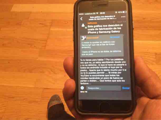 Estoy de acuerdo en todo menos en lo ultimo jajajaja como se nota que no lo as visto xd pero si, conozco 1 caso que el 6+ se le ha doblado sin hacerle nada jajaja y solo conozco 2 personas con un iPhone 6+, un 50%... No son suficientes móviles para hacer una estadística pero ya mete miedo...