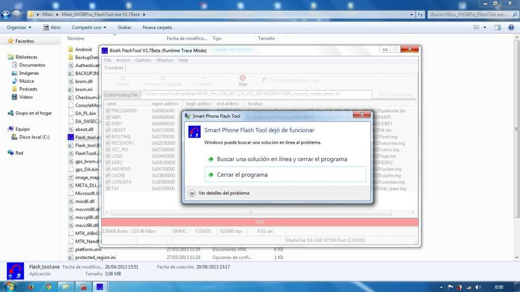 Lo he vuelto a enchufar y desenchufar con y sin bateria, pero nada de nada. El ordenador me lo reconoce cuando lo enchufo, ya que hace el tipico sonido de cuando conectas algo por Usb. Alguna solucion compis?? El driver que tengo instalado segun el administrador de hardware es el siguiente: MediaTek DA USB VCOM Port (COM35) Ahora cuando intento pasar otra vez el SP flash tools cuando llega al 100% la primera vez con la barra en rojo me salta este error:
