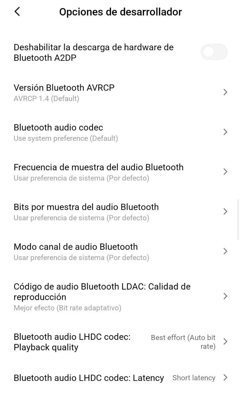 me podrías hacer un favor puedes poner la captura de opciones de desarrollador cuando tienes vinculados los auriculares, para ver qué te sale.. Me refiero a esta captura.