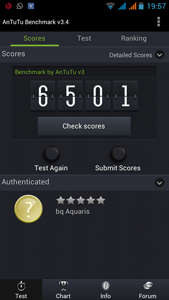 Este es mi test con bq aquaris 2.0.7 ks original, con todos programas instalados, solo root y recovery... no está mal