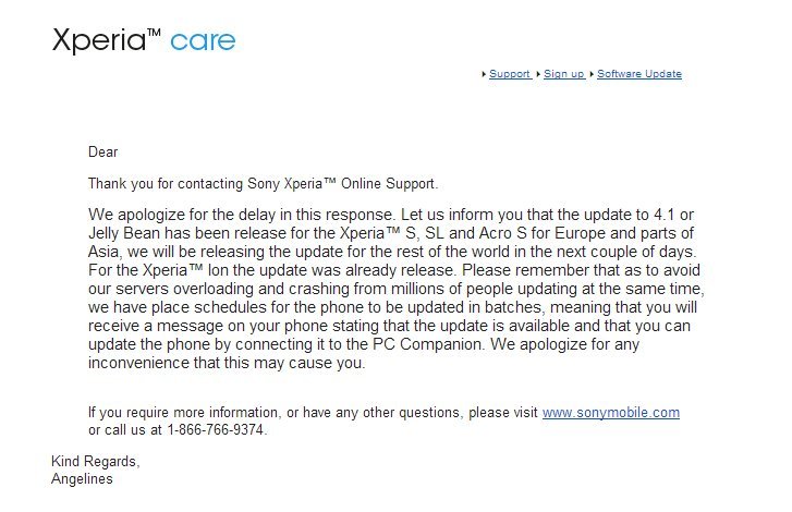 Bueno yo hoy por casualidad conecte mi xperia (cosa muy rara en mi) a la pc, y el PC Companion me aviso de una actualizacion! Lo actualice y ahora disfruto de JB en mi xperia S.