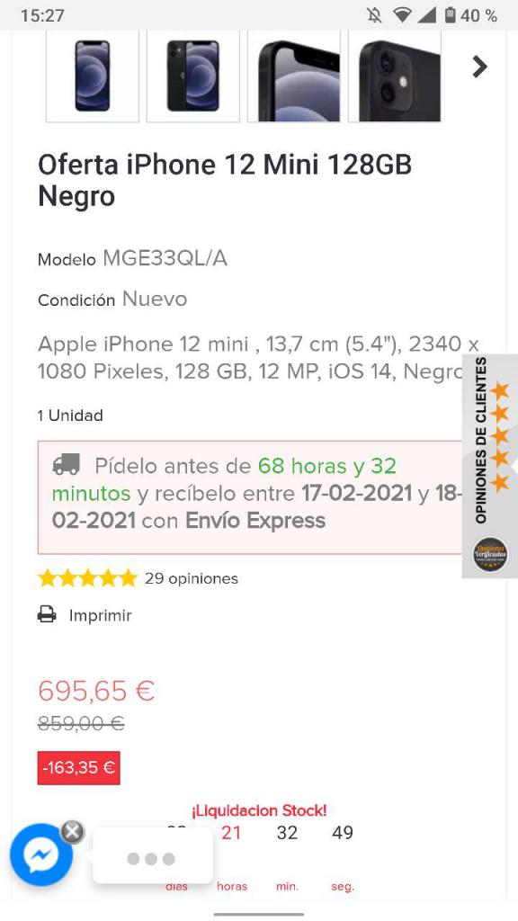 El 12 Mini de 128 Negro: 696€ en ShopDutyFree. La gente dice que en la venta cumplen bien pero no sé qué tal es gestionar con ellos el segundo año de garantía.