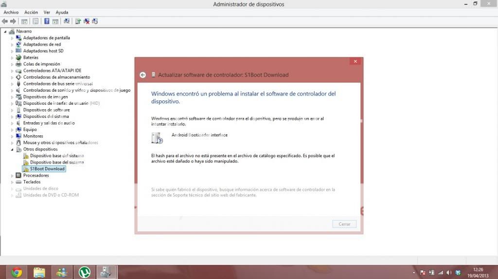 Buenas. Mirad el error que me da al intentar instalar los drivers en windows 8.