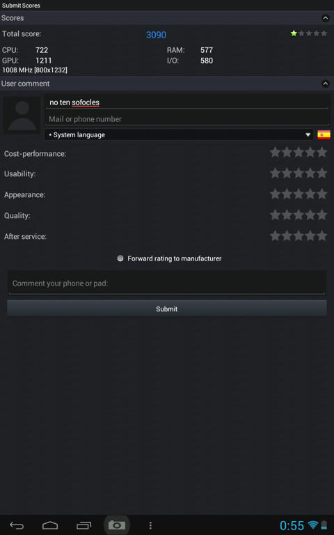 Captura de la puntuación en antutu: