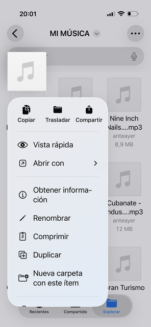 Bueno dos peros Lo de más presión con el dedo…no veo diferencias Sólo detecta que has mantenido pulsado Y ahora voy a subir un pequeño clip respecto a lo de cortar y pegar, porque en la memoria interna parece que Sí funciona y “traslada”, pero a una memoria externa sólo copia, no traslada ![]() "Haptic Touch en iPhone es una función de software que utiliza una pulsación prolongada para activar acciones, en lugar de la presión física del 3D Touch. Funciona tocando y manteniendo pulsado un elemento para obtener una vista previa o acceder a menús contextuales, recibiendo una respuesta háptica (una vibración) para confirmar la acción. Se introdujo en el iPhone XR para sustituir al 3D Touch y se puede configurar en Ajustes > Accesibilidad > Tocar. ¿Qué es Haptic Touch? Sustituto del 3D Touch: Es la tecnología que Apple introdujo en el iPhone XR para reemplazar el 3D Touch, que dependía de la presión física de la pantalla. Basado en el tiempo: En lugar de aplicar más fuerza, Haptic Touch reacciona a cuánto tiempo mantienes presionado un elemento en la pantalla. Lo de la memoria externa ni idea, no suelo conectar ningún almacenamiento externo al iphone, los 256GB me llegan y para copia de seguridad uso icloud, tengo 200GB que me llegan de sobra para las 40 y pico GB de fotos acumuladas con los años y para las copias de seguridad de todos mis dispositivos, a parte de tener acceso a las fotos desde todos los dispositivos si quiero tener acceso a más documentos desde todos los dispositivos lo meto en icloud drive. son 200GB por 2,99€ al mes, ni dos cafés... me merece la pena. |