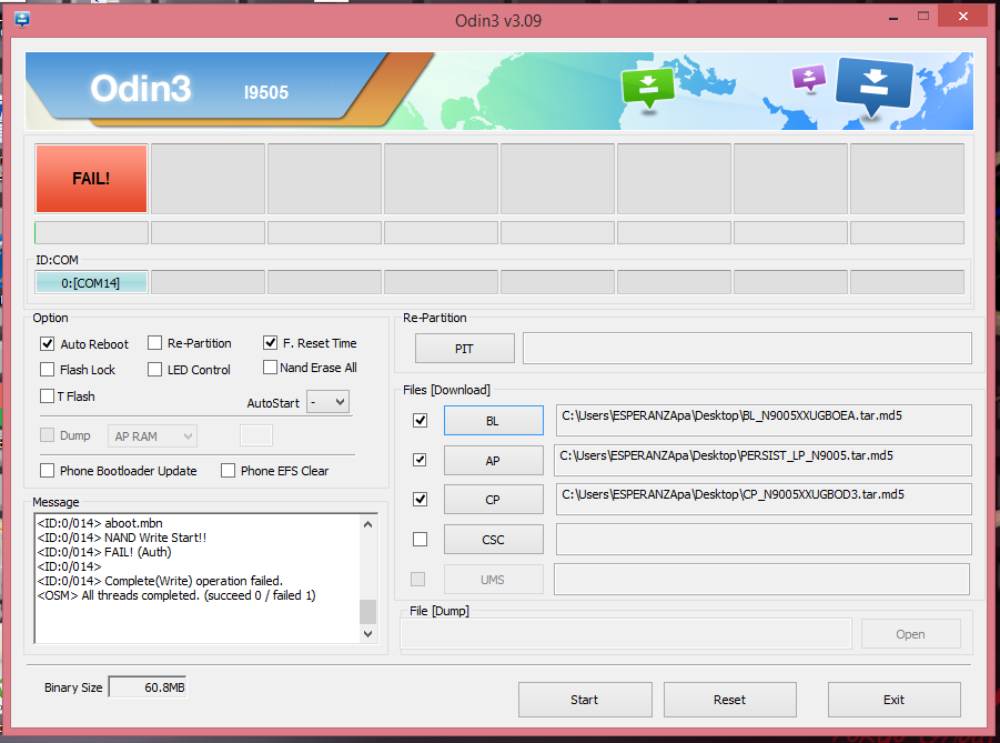 aqui de nuevo molestándolos, instale la rom y todo hiva muy bien hasta que pase con odin, cargue los archivos y conecte el equipo pero me manda un error, descargue los archivos 3 veces cada uno pensando estaban mal pero ni asi, puse todos los archivos en una carpeta junto a odin, y en el escritorio y tampoco, que creen que pueda estar pasando?