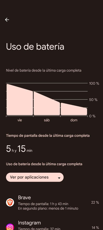 Primeros consumos en reposo con Android 15; realmente nada que destacar, la batería se sigue completando igual y sigue con consumos un poco altos: