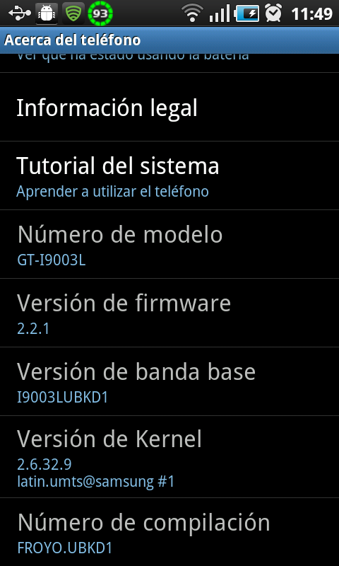 mi duda es que tengo la version de banda base firmware i9003LUBKB1 con froyo, y no se si hacer este tuto , no quiero arruinarla , me gustaria que me den el okey o que me ayuden con una solucion , ya que el maldito kies dice que tengo el firmware mas reciente! Desde ya , muchas gracias! |