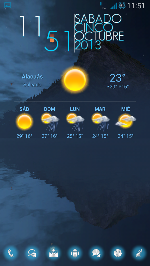 chukyser es el Hd widgets, tiene varias opciones, esa es la de 4x2, 5 días, sin fondo y los colores, todo lo configuras desde el widget, llevo con el desde el S2 jeje y no me canso.