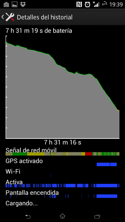 Hoy le he metido tute... Han sido hora y cuarto de gps, bluetooth y streaming de musica a traves del bluetooth... Internet conectado con descarga de correo cada 30 min.... Y por el medio una breve llamada de 2 minutos... La pantalla encendida con el brillo en auto...