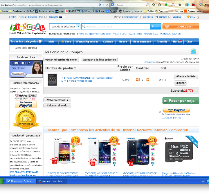 mosky69 en tinydeal como bien has visto ,La bateria cuesta 12.89 € y el envio es gratuito . En la foto no tienes cargos por envio . Tienes dos baterias pero ya no veo que te cobren por el envio.