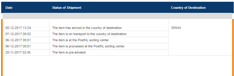 hola, si no es mucha molestia, puedes sacar captura de lo que te pone en 17track.net?? te lo agradeceria porque tengo un movil de 240€ por el mismo metodo de envio postNL y lleva el tracking sin moverse desde el 30 de Noviembre, esta en admitido en correos, accepted en 17track y pre-advised en postNL he ido a una oficina de correos y me dicen que no lo tienen en España entonces admitido en correos que quiere decir?? lo que quiero es saber porque tarda tanto me he puesto en contacto con geekbuying donde lo compre y dicen que no se ha perdido ni nada que me llegara. veremos.