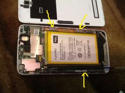 Nuestro TCL tambien lleva para el lápiz por dentro, sólo que no lleva el agujero. Subo una foto del Y910 desmontado: