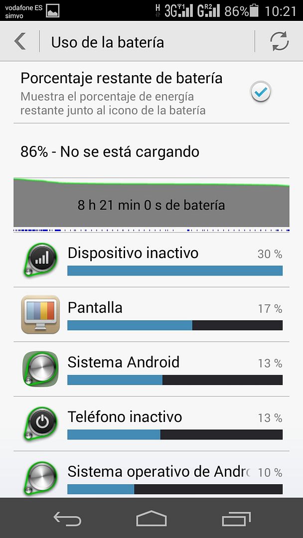 Lo que si es raro es que algunas veces lleguen los whatsapp al momento y otras no. Antes creia que debe entrar en un modo especial (bajo consumo) al apagar la pantalla que hacia que se retrasaran todas pero ahora estoy descolocado pq los gmail llegan al momento y los whatsapp si tardan algo mas asi que mi teoria no creo que sea.. por cierto he he hecho un wipe cache desde recovery stock y de momento no me han vuelto a salir los 2 servicios consumiendo mucha bateria pero ha sido bestial de pasar de un 85% a un 28% en 3-4h que he salido de casa. Cita: