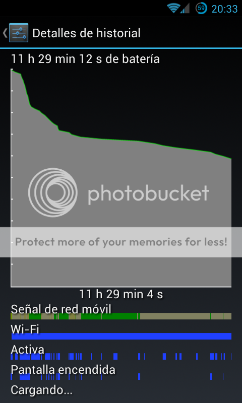 Probe la camara de ICS que pusieorn unos post atras y si va un poco mejor a la hora de grabar video pero en fotos yo la siento igual ya hice varias comparaciones y la veo igual. Comparto mi consumo de bateria con unas cuantas capturas, como podran ver no use mucho el wifi pero si use los datos por ratos asi como algunos mensajes en whatsapp y en facebook y pues consegui casi las 3 horas de pantalla que lo veo muy aceptable para jellybean y cabe señalar que con brillo en modo automatico