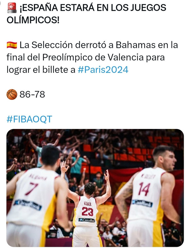 ![]() El 26 de julio empiezan los Juegos Olímpicos, personalmente disfruto mucho viéndolos...obviamente no veo todas las modalidades porque no me da la vida pero intento estar pendiente de todas donde hay presencia española. El fin de este hilo publicar y comentar entre todos, todo lo que vaya sucediendo. Y lo inauguro con la clasificación del equipo de basket para estas Olimpiadas ![]() ![]() ![]() ![]() VAMOS!!!! ![]() ![]() ![]() ![]() Rudy Fernández se despedirá del baloncesto en los JJOO. El alero del Real Madrid ha anunciado su retirada al finalizar un curso que espera coronar con otro hito en su majestuosa carrera, el de convertirse en el único baloncestista de la historia en disputar seis Juegos Olímpicos.