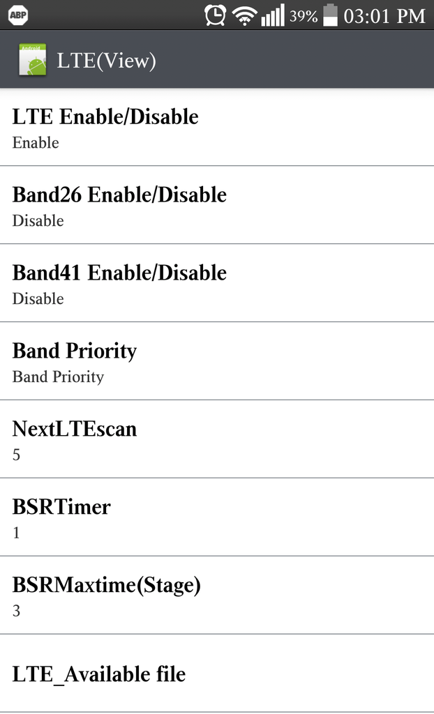 El mismo resultado si entraba en el partado de LTE desde el menu olculto