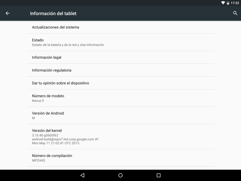 Después me detuve viendo la información sobre el dispositivo y ver que ocurría si intentaba acceder al easter egg, pero todo es bastante normal y muy lollipop, pero eso si, no hay easter egg.