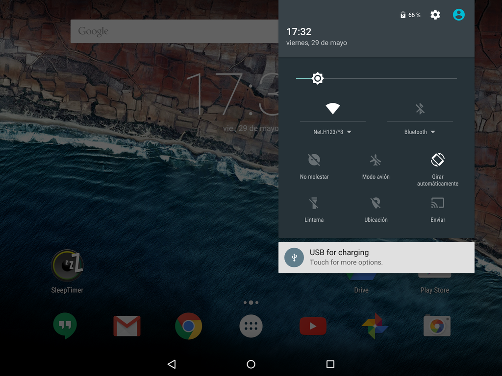 Tras esto fui a ver las diferencias visuales, prácticamente es igual a lollipop, con la excepción del cajon de apps (que ahora es deslizable verticalmente como en android 2.3.6, ¿un paso atrás?), la barra de notificaciones en tablet se puede desplazar desde los lados (dejo fotos), encontramos el reconocimiento de voz en la pantalla de bloqueo además de un nuevo estilo de letra para la fecha en esta pantalla y nada más por el momento, supongo que me encontraré con más cosas según la pruebe.
