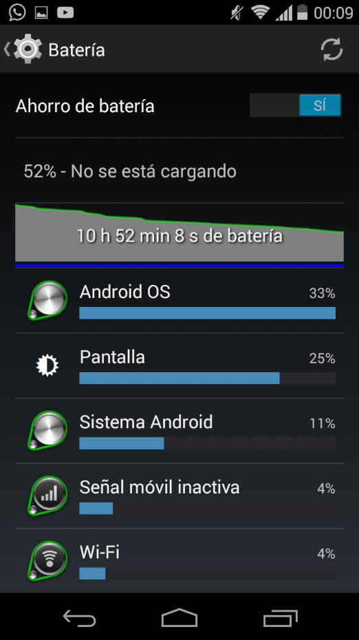 La bateria solo me dura 1 dia y sin utilizar apenas el movil, el consumo de la pantalla no llegara ni a las 2 horas. El movil no es ROOT y por ahora lo voy a dejar asi.