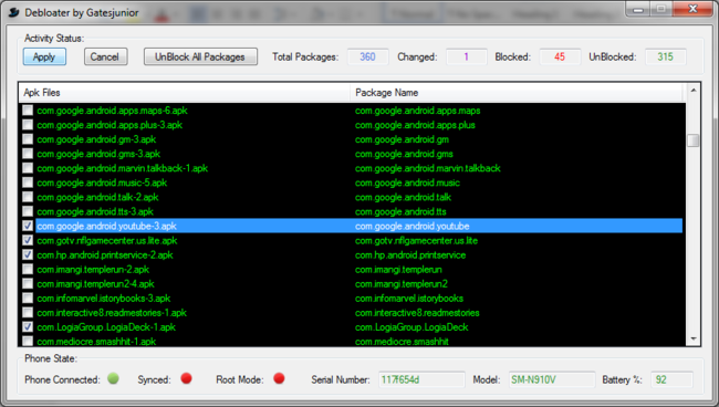 Fuente: http://www.xatakandroid.com/aplicaci...-de-hacer-root Si compráis un móvil Android a una teleoperadora, es muy probable que venga con unas cuantas aplicaciones que no vais a utilizar. A esto hay que sumarle que algunos fabricantes deciden aportar su granito de arena añadiendo todavía más apps en lo que se conoce como bloatware. La forma más común de eliminar toda esa basura es hacer root e ir borrándolas ya que al ir instaladas de serie no basta con una simple desinstalación. Por fortuna existe una alternativa a este método que además no involucra tener root (salvo que estés en una versión inferior a KitKat). Lo único que necesitaremos será un ordenador, un cable USB y por supuesto el dispositivo que queremos librar de todo ese software. Debloater, como su nombre indica, es un asistente que nos permite hacer todo el proceso de bloqueo de las aplicaciones. No las elimina, pero las quita de nuestra vista para que no tengamos que lidiar con ellas. Eso sí, seguirán ocupando espacio en nuestra memoria. Si queremos eliminarlas, entonces sí que necesitaremos root. Para bloquearlas no es necesario y para la mayoría de los usuarios es más que suficiente. ¿Qué podemos hacer con herramienta? Lo siguiente: Bloquear y deshabilitar aplicaciones, hacer el proceso contrario, filtrar los paquetes para verlos en una lista y decidir cuáles queremos modificar, exportar e importar listas para ayudar (o que nos ayuden) a los demás a bloquear aplicaciones según cada Android y finalmente eliminar. ¿Cómo se utiliza Debloater? Debloater es una aplicación muy sencilla de utilizar. Lo primero que tendremos que hacer es ir a nuestro Android y activar las opciones de desarrollador (ya sabéis, pulsando en el número de compilación varias veces hasta que aparezca el aviso). Hecho esto, vamos al nuevo menú y marcamos la depuración del USB. Con esto hecho, conectamos el Android al ordenador y abrimos la aplicación. Esperamos a que lea el terminal, puede tardar unos segundos, y a continuación nos aparecerá el menú con todas las opciones que tenemos disponibles, tal que así: Lo primero que tendremos que hacer es pulsar el botón que pone "Read Phone Packages". En ese momento, la aplicación descargará una lista de todos los apks que tenemos en la memoria de nuestro Android. Una vez termine, vamos clickando en las aplicaciones que queremos bloquear. Cuando hayáis marcado todas las que vais a pasar a esta lista negra, le damos al botón "Apply" y esperamos a que termine. ¿Qué ocurre si de repente un día tenemos que enviar el móvil al servicio técnico y no queremos que vean lo que hemos hecho con esas aplicaciones bloqueadas? Muy sencillo: volvemos a conectar el móvil al PC, encendemos la aplicación, desmarcamos todas las aplicaciones y le damos al botón "Apply" de nuevo. ¿Merece la pena rootear el móvil y eliminarlas usando una aplicación de este tipo? La respuesta rápida es sí pero solo merece la pena si nuestro móvil tiene poca memoria interna y queremos aliviarla un poco para instalar otras aplicaciones. En el caso de los modelos de 8GB, es casi obligatorio. Podéis descargarlo para PC en el siguiente enlace. Si tenéis un Mac, tenéis una versión del software aquí. |