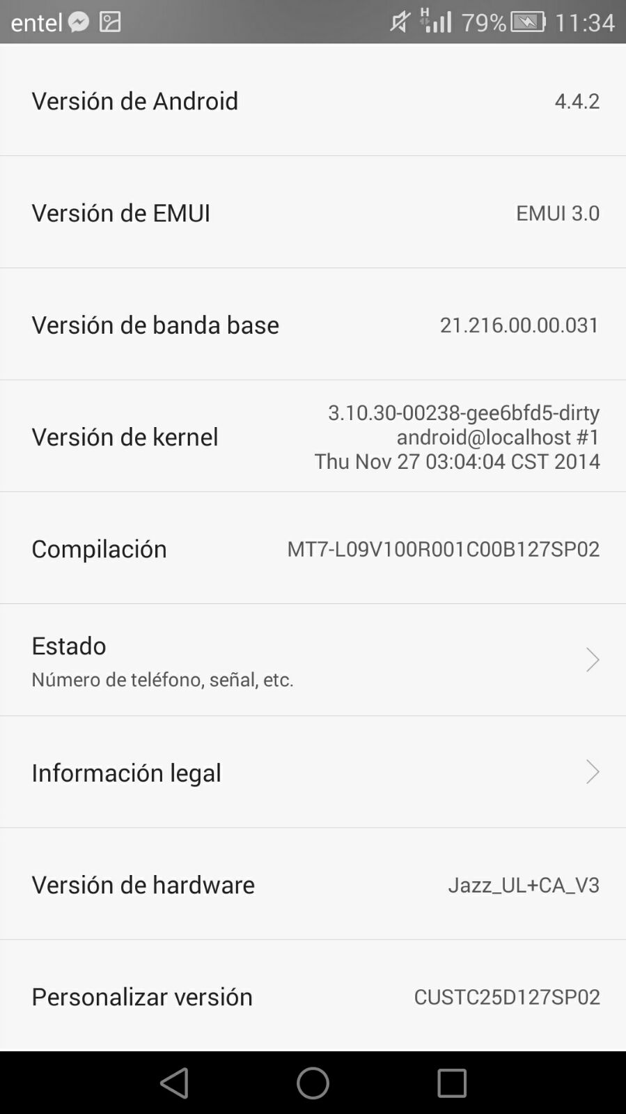 Tengo el Mate 7 de operadora en Perú con Claro aunque liberado, el modelo es el MT7-L09 con Android 4.4.2 y ya se que está disponible Android 5.1.1 y quisiera actualizarlo de forma manual, mis preguntas son: - ¿Necesito desbloquear el bootloader? - ¿Puedo actualizar encima de la versión que tengo actualmente o es necesario instalar otro firmware? - ¿Lei por internet que es necesario tener la compilación C900, pues tengo la V100 si no me equivoco? Por último, si todo lo anterior no se necesita, bastará con descargar el firmware, pasarlo a la memoria e instalarlo ya desde ajustes o con la combinación de botones. Espero su ayuda y agradezco anticipadamente, adjunto captura de pantalla del sistema.