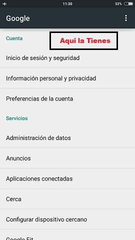 @prinnova para acceder a los ajustes de google es: ajustes / otras cuentas / google :