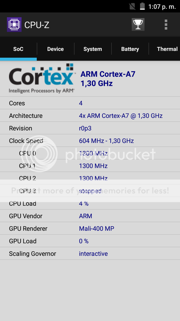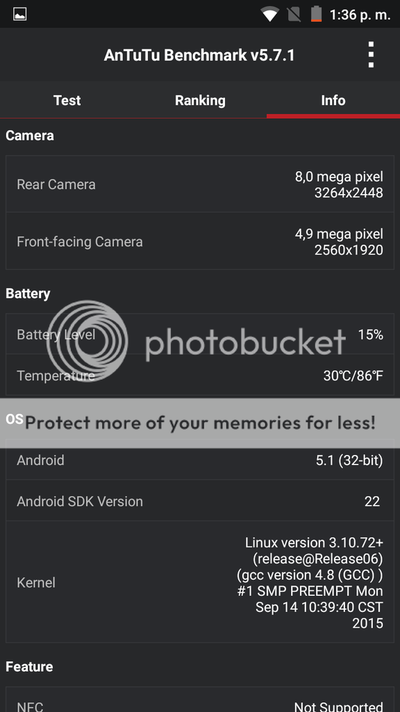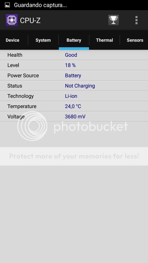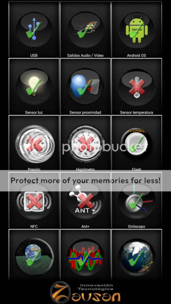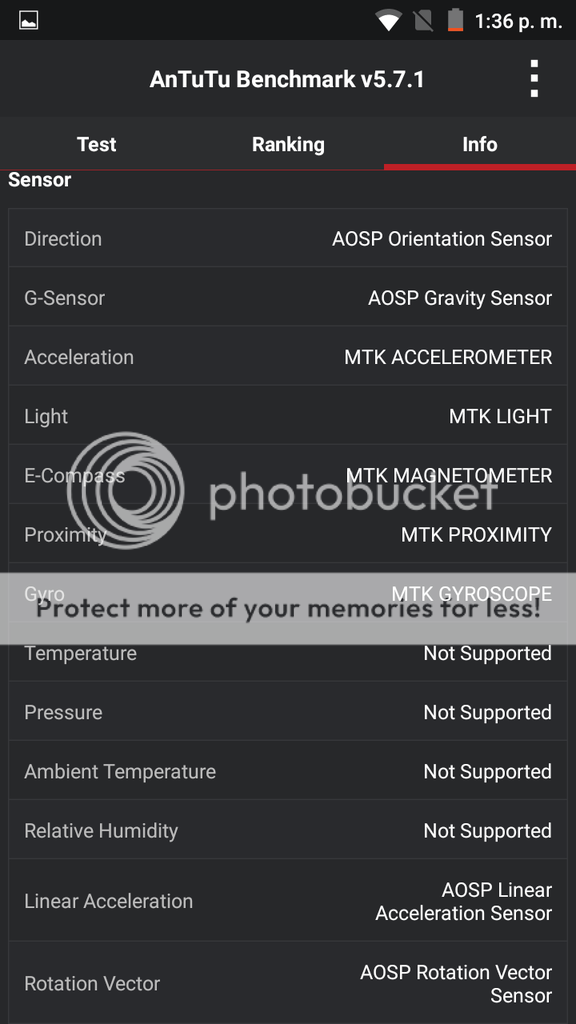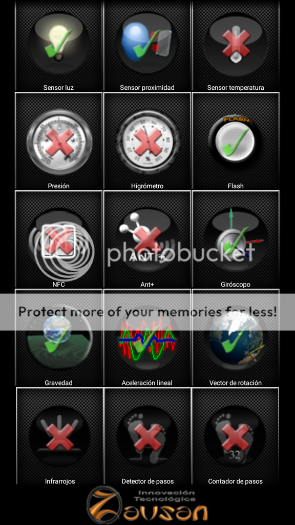 Aparecen muchos sensores detectados tanto en Cpu-Z, Antutu y Z-Device Test, pero la verdad es que parece tener únicamente tres: sensor de proximidad, luminosidad y acelerómetros básicos. Parecen estar implementados por SW giroscopio, brújula, sensores de rotación, aceleración líneal…sin embargo no parece disponer de los mismos por HW. Desconozco cuál es el motivo de este hecho.