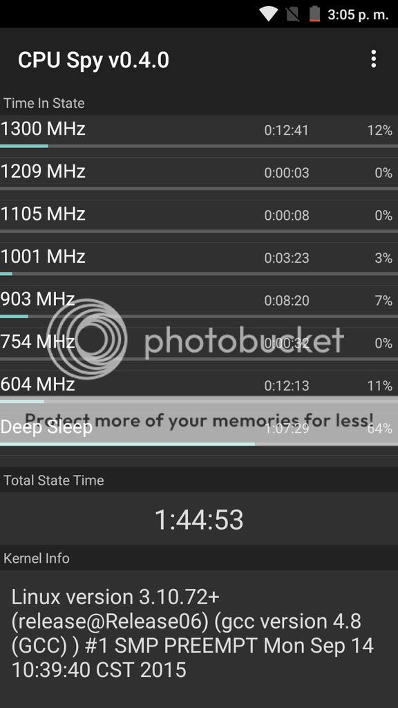 De momento no puedo decir que este sea uno de los puntos fuertes de este terminal, aunque espero que con el tiempo la batería vaya cogiendo ritmo. Las pruebas hechas hasta el momento sacan que la batería tiene una capacidad de 2100mah en lugar de los 2400mah con los que se anuncia el terminal (se ha medido el tiempo de carga con un cargador de 1.00A de Huawei que es extremadamente exacto y estable y además se ha comprobado con un medidor de consumo energético). Parece entrar bien en Deep sleep y no he apreciado que gaste demasiado en stand by. Si se quiere un mayor rendimiento de la batería recomiendo limitar la CPU a 1001 o 903Mhz o incluso a 754Mhz, siendo root, con el programa No-Frills CPU que se puede encontrar de forma gratuita en Play store. Si bien, este método limitará los recursos y por tanto puede afectar sensiblemente a la fluidez del teléfono.