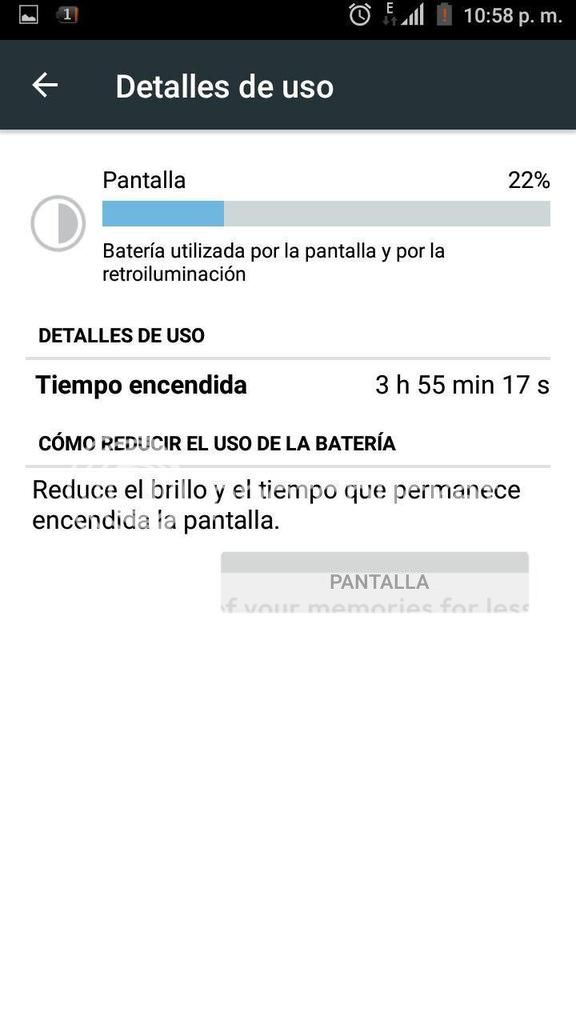 4h de pantalla en 2 días de uso con 3G desactivado la mayor parte del tiempo, y el procesador limitado a 1Ghz.