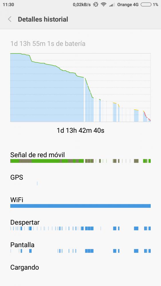 La gráfica de la batería de MIUI no es que funcione demasiado bien. Estoy casi todo el día con wifi y me sale en azul solo trocitos minúsculos.
