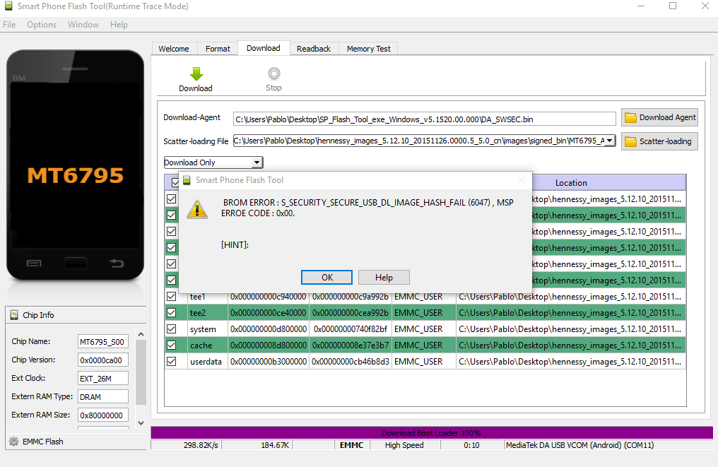 Y ahora al flashearlo por SP flash tool la versión 7.0.22 china pues da error y no flashea.