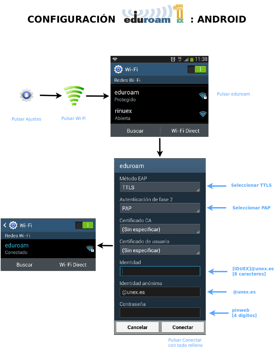 Os dejo de donde saque yo la información para configurarlo, que si es red eduroam imagino que os valdrá: https://pbs.twimg.com/media/CIL0wQJWwAAqtMk.png