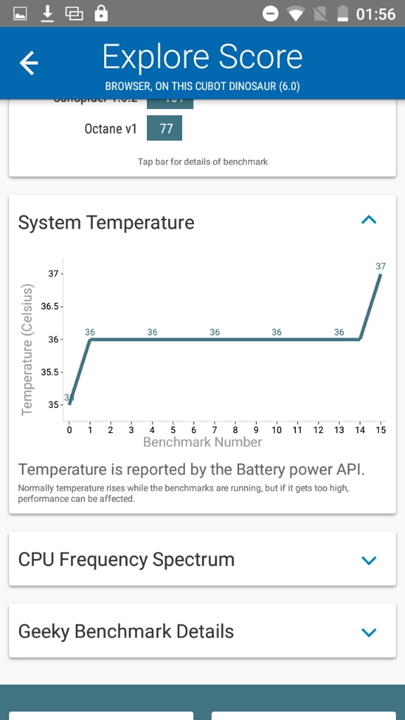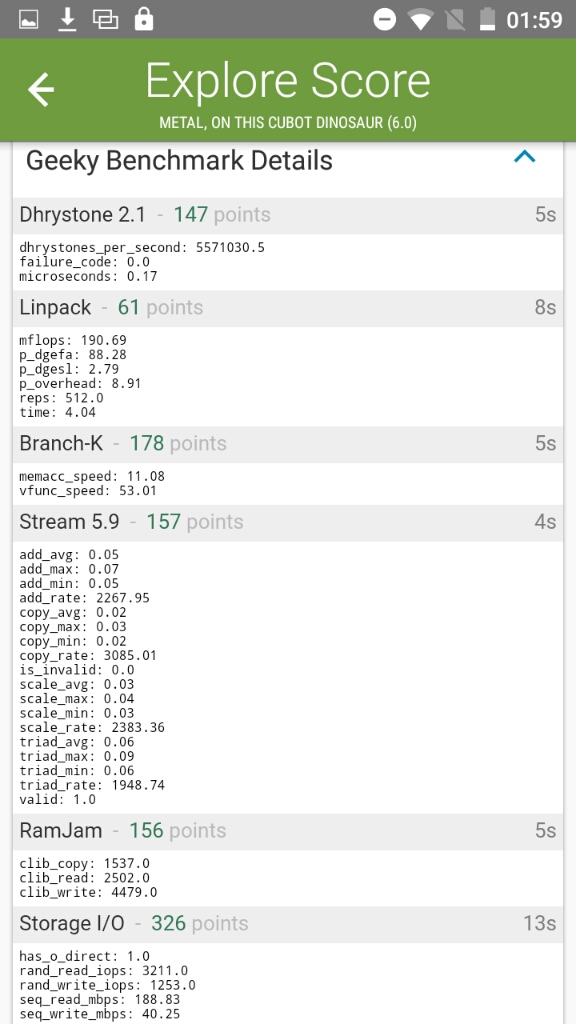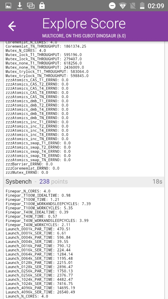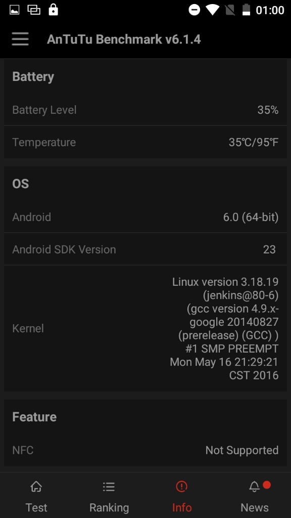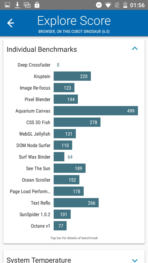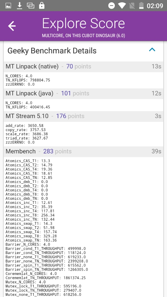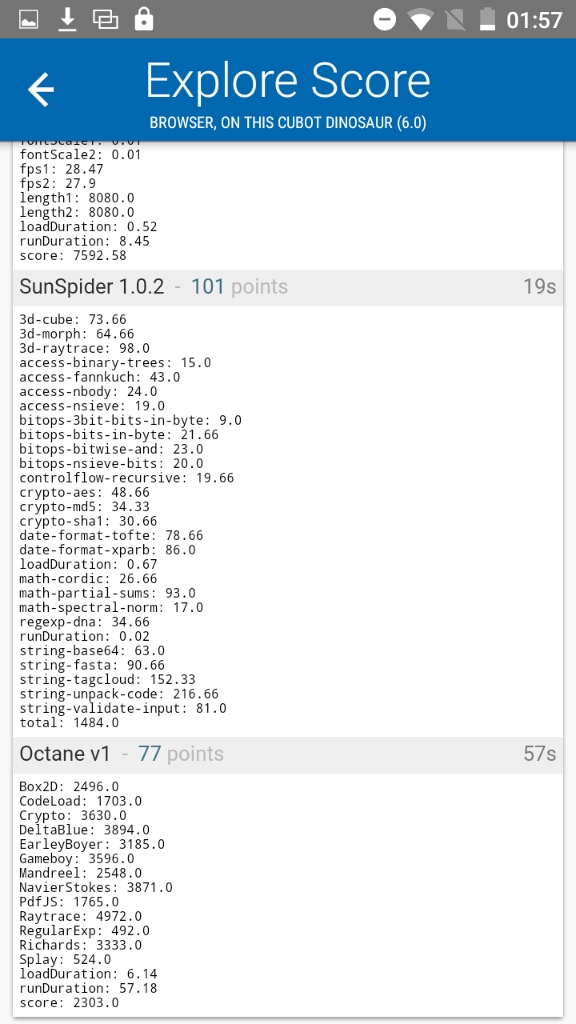 Antutu Benchmark System InfoPara quien no conozca estos programas, decir que un benchmark es un programa o prueba normalizada que se realiza en un dispositivo. Estas pruebas puntúan (generalmente ponderando varios resultados obtenidos) el desempeño de un dispositivo, de manera tal que el puntaje final puede servir para poder comparar de manera simple y directa el rendimiento general entre varios dispositivos. Existen muchos benchmarks en la store de Google, pero en mis pruebas generalmente utilizo los mas populares. Si tienes alguna sugerencia de un nuevo benchmark, déjame un comentario nombrando el programa específico y de la razón, para poder contemplarlo en siguientes reviews. En la práctica, si quieres comparar este dispositivo (del cual estoy comentando en este articulo) con otro que veas por la web, o uno que tu mismo tengas, basta con que encuentres el resultado de alguno de los benchmarks y compararlo directamente con las capturas de pantalla que pongo aquí. Con esto, ya te puedes hacer una idea general de que tal van estas máquinas, comparando sus resultados. Para la ejecución de estos benchmark, las condiciones del dispositivo son: