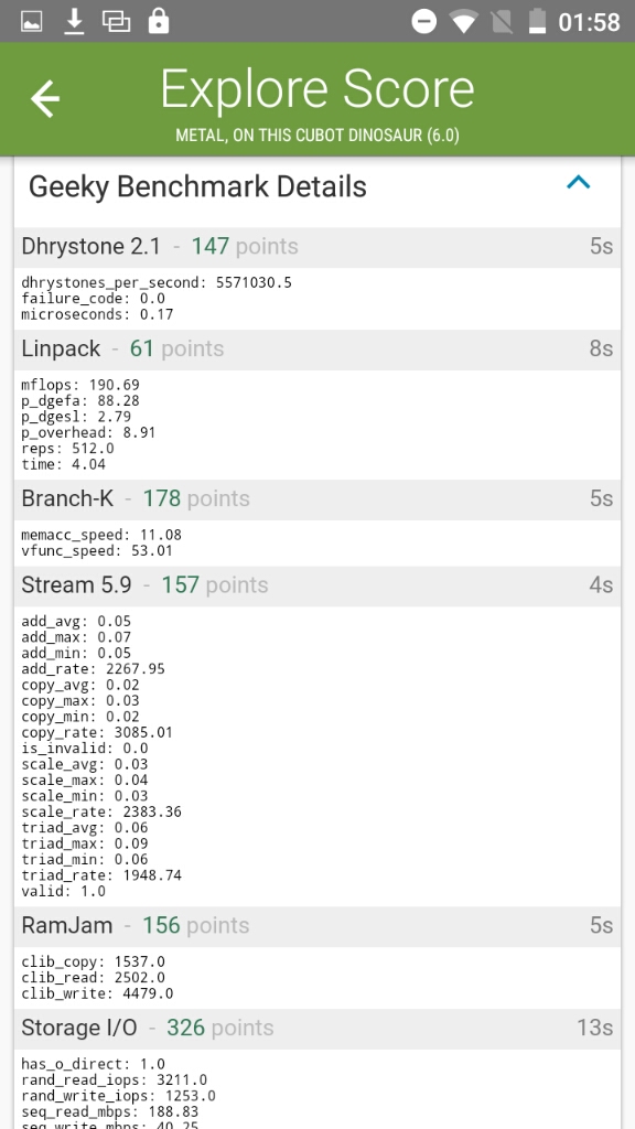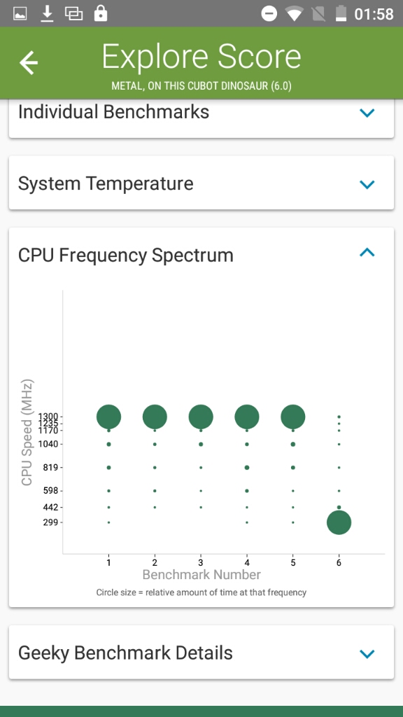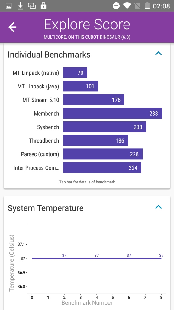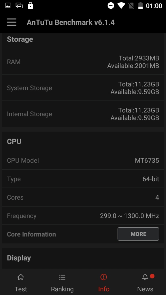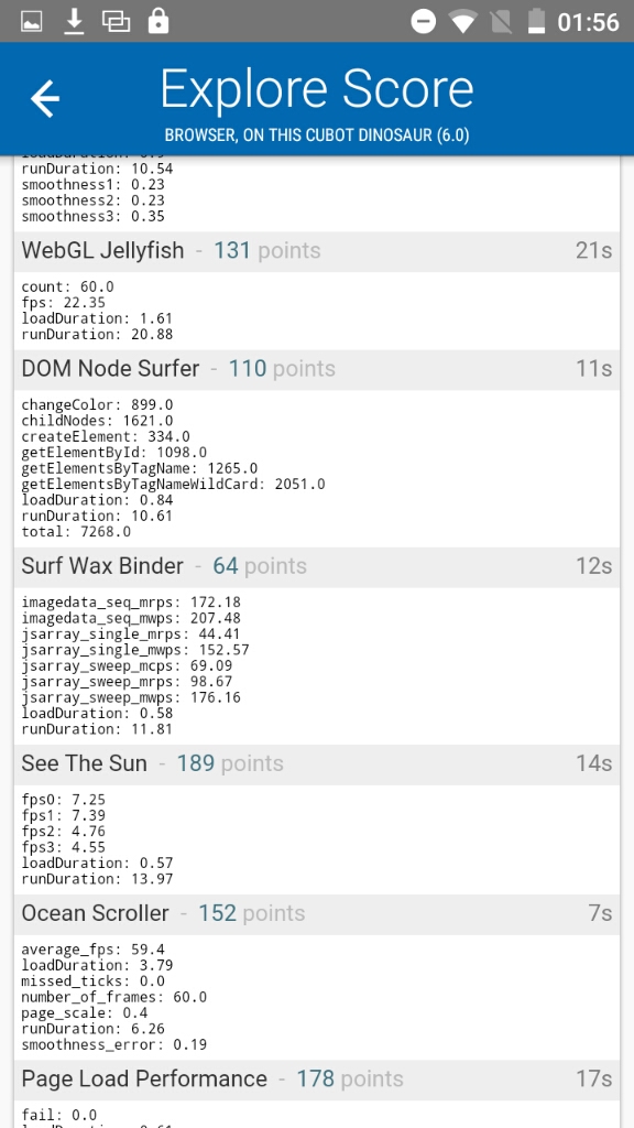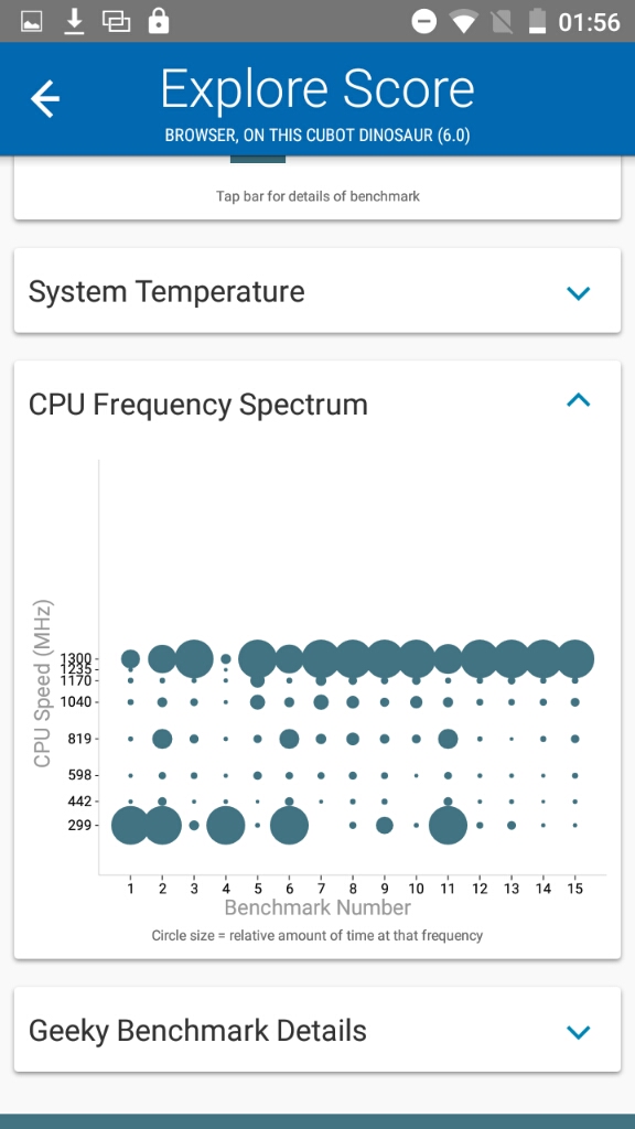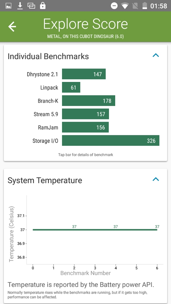 Antutu Benchmark System InfoPara quien no conozca estos programas, decir que un benchmark es un programa o prueba normalizada que se realiza en un dispositivo. Estas pruebas puntúan (generalmente ponderando varios resultados obtenidos) el desempeño de un dispositivo, de manera tal que el puntaje final puede servir para poder comparar de manera simple y directa el rendimiento general entre varios dispositivos. Existen muchos benchmarks en la store de Google, pero en mis pruebas generalmente utilizo los mas populares. Si tienes alguna sugerencia de un nuevo benchmark, déjame un comentario nombrando el programa específico y de la razón, para poder contemplarlo en siguientes reviews. En la práctica, si quieres comparar este dispositivo (del cual estoy comentando en este articulo) con otro que veas por la web, o uno que tu mismo tengas, basta con que encuentres el resultado de alguno de los benchmarks y compararlo directamente con las capturas de pantalla que pongo aquí. Con esto, ya te puedes hacer una idea general de que tal van estas máquinas, comparando sus resultados. Para la ejecución de estos benchmark, las condiciones del dispositivo son: