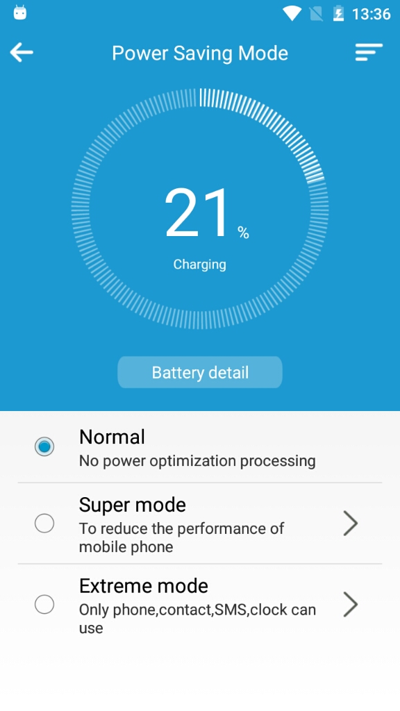 El resto de funciones entran en modo suspendido, aunque se puede forzar al teléfono a que funcione normalmente, pero es conveniente que este modo no habilite aplicaciones como mensajería (Telegram, Hangouts, Whatsapp, etc) ni nada por el estilo, para aprovechar este último "suspiro" de la batería y maximizarlo lo mas posible. Este modo se activa automáticamente cuando queda 5% de batería (y no he encontrado si se puede configurar este porcentaje) En este modo, el teléfono cambia el launcher por defecto que tengamos, por uno propio que solo tiene estas funciones básicas. Con la opción "Exit extreme mode" podemos volver a nuestro launcher habitual (al escritorio de android), con la consiguiente subida en el consumo de energía (acortando con esto la duración de la misma) Nota sobre el modo extremo El launcher "Power Saving Mode" es el correspondiente al modo extremo, y cuando nos pregunte por habilitarlo como "home" (launcher por defecto) deberiamos seleccionar "Always" (Usar siempre) Para volver a nuestro launcher, presionamos en "Exit extreme mode" y luego el sistema nos preguntará si queremos utilizar nuestro launcher de antes por defecto (y le damos nuevamente a "Always") Activación manual Si deseas activar alguno de estos modos de forma manual, simplemente selecciona de la lista de modos cual quieres, y se aplicará inmediatamente. Como en todo producto, nos encontramos frente a un disopsitivo que tiene sus puntos a destacar de forma positiva, también nos encontramos con aquellos puntos o características que, o no cumplen correctamente con lo que se les pide, o simplemente no incorporan una funcionalidad que, en mi opinión, debería incluír. Asimismo, y en parte basado en esta lista de puntos en contra, en donde doy mi punto de vista sobre que aspectos deberían tenerse en consideración en caso de generar una versión evolucionada o actualizada del dispositivo. Pros