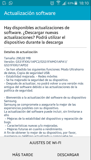 Buenas tengo el g531F con lollipop 5.1.1 y tengo una actualizacion, esta de la imagen pero no se si actualizar o no.