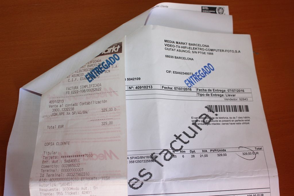 * Fecha de la factura: 7/7/2016 (Mediamarkt)