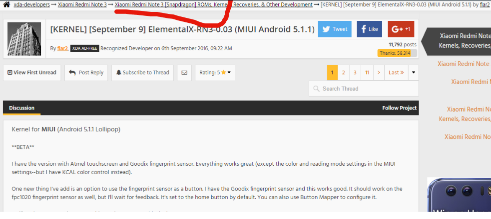 Estoy mirando por xda para meter un kernel pero pone redmi note 3