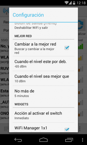 ADMINISTRA TUS REDES WI-FI EN ANDROID CON WIFI MANAGER Android, como cualquiera de los demás sistemas operativos móviles, dispone de un asistente de redes inalámbricas que nos permite conectarnos fácilmente a cualquier red que se encuentre a nuestro alcance, sin embargo, la información que nos brinda este asistente es bastante pobre centrándose principalmente en el SSID y la señal aproximada que recibimos. Existen aplicaciones que nos permiten obtener mucha más información sobre todas las redes que se encuentran a nuestro alcance. Estas aplicaciones se llaman gestores de redes Wi-Fi y WiFi Manager es una de las más completas que podemos encontrar para sistemas operativos Android. La principal función de esta aplicación es poder conocer información sobre todas las redes inalámbricas que tenemos a nuestro alcance para poder conectarnos a la que mejor servicio pueda ofrecernos e incluso para ayudarnos a configurar nuestra propia red Wi-Fi eligiendo un canal que no se encuentre excesivamente saturado, sin embargo, también nos va a permitir realizar otras funciones que destacaremos a continuación. Podemos descargar WiFi Manager de forma totalmente gratuita desde la Play Store. Analiza las redes Wi-Fi al alcance Una vez descargada la ejecutamos en nuestro dispositivo y lo primero que veremos será una ventana similar a la siguiente. En esta ventana nos aparecerán todas las redes Wi-Fi que se encuentran a nuestro alcance. En la parte derecha podemos ver una gráfica con la señal que nos llega de cada red (podemos cambiar la gráfica por el dB desde el menú de ajustes). También podemos ver el canal por el que cada red está transmitiendo y el tipo de cifrado que utiliza cada red (open, WEP, WPA, etc).. A la derecha del SSID de cada red podremos ver una serie de iconos: Corazón: Indica las redes que tenemos guardadas en nuestro dispositivo y a las que ya nos hemos conectado anteriormente. Tick verde: Nos indica la red a la que estamos conectados actualmente. Escudo: Indica una red a la que no nos hemos conectado y que está protegida por contraseña. Conectarnos a una red y configurar la IP de nuestro smartphone Android Una vez tenemos listada en el programa la red a la que nos vamos a conectar debemos pulsar sobre ella para abrir el menú de conexión. Aquí debemos introducir la clave de nuestra red Wi-Fi y pulsar sobre conectar para establecer la conexión. Una de las funciones más interesantes que nos ofrece Wi-Fi Manager es la posibilidad de establecer una dirección IP manual al conectarnos a una red Wi-Fi. Para ello debemos marcar la pestaña “Mostrar opciones avanzadas” y “Asignar una IP. Veremos una ventana similar a la siguiente. Aquí debemos introducir: Dirección IP que queremos establecer a nuestro dispositivo. Máscara de subred Puerta de enlace DNS A continuación pulsaremos sobre el botón de conectar y nuestro dispositivo se conectará a la red seleccionada con la dirección IP especificada. Elegir mejor red WiFi si tenemos varias disponibles de forma automática Una función muy interesante para los usuarios que tienen varias redes en su casa o trabajo (por ejemplo, varios puntos de acceso) es poder conectarse automáticamente a la mejor red según donde estemos. Por lo general Android se conecta automáticamente a la mejor red si no estamos conectados a ninguna, pero si ya tenemos una conexión establecida no cambiaremos de red hasta que perdamos la señal. WiFi Manager nos va a permitir elegir la mejor red automáticamente y conectarse a ella siempre que se encuentre una red mejor que la actual sin tener que hacer nosotros nada para ello. Para habilitar esta opción debemos abrir el menú de ajustes y habilitar la opción “Cambiar a mejor red”. Podemos configurar el tiempo que una red debe estar disponible para conectarse a ella (para evitar conectarnos simplemente por “pasar por delante de ella”) y la diferencia de señal que debe haber para realizar el cambio y no conectar así a redes peores. Modo Radar de redes Wi-Fi Para finalizar, otra de las funciones que ofrece WiFi Manager es mostrar todas las redes en una especie de “radar” en el que se mostrarán todas en sus correspondientes canales en forma de elipses que serán más grandes o más pequeñas según la cantidad de señal que nos llegue. De esta forma podremos conocer rápidamente las mejores redes y los canales más saturados que nos ayudará a configurar nuestra red en el mejor canal posible para evitar interferencias. En la fotografía anterior, por ejemplo, podemos ver cómo los canales 4, 5 y 8 son los mejores para transmitir. Sin duda un gran gestor de redes inalámbricas que no puede faltar en ningún dispositivo Android. Añadido al post en cuestión. http://www.htcmania.com/showpost.php...70&postcount=1