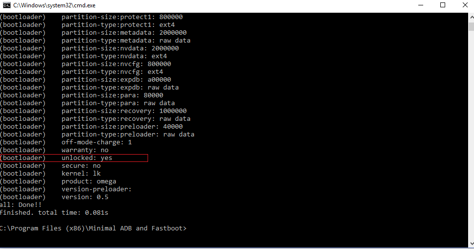 Hola, hace poco me ha llegado este telefono y viene con la rom falsa 8.0.1.0.0, estoy intentando averiguar si tiene el bootloader desbloqueado tal y como se describe en este post pero pasa algo extraño (o eso creo por que no tengo ni papa de esto) resulta que cuando reinicio en modo fastboot al minuto o menos el telefono se reinicia solo en modo normal, a ver si podeis echarme una mano y decirme que estoy haciendo mal, gracias y un saludo.