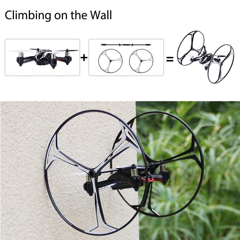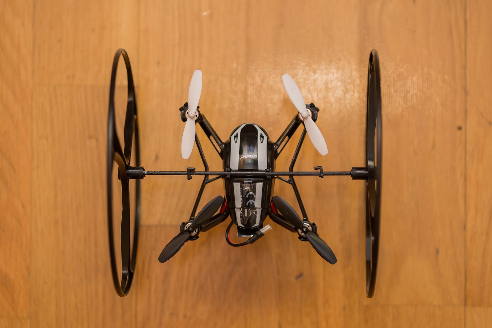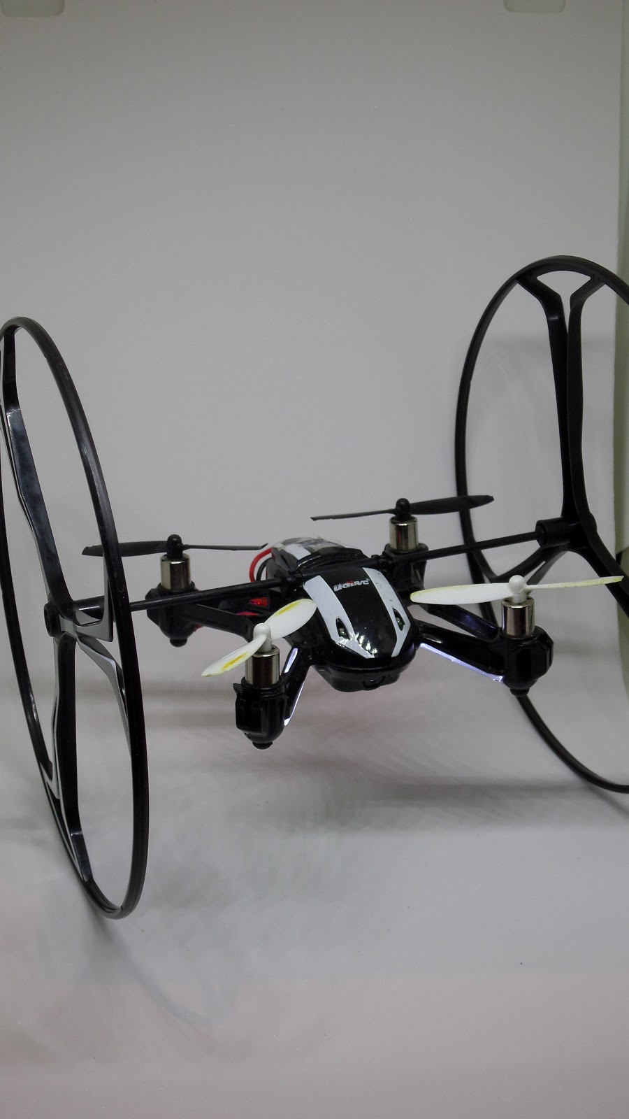 Pruebas de vueloComo he comentado al principio del artículo, no soy un experto en este tipo de dispositivos y por tanto mis opiniones son 100% desde el punto de vista de un usuario normal, con un conocimiento muy básico de este tipo de dispositivos, aunque con algunas horas de práctica en videoconsolas y que por tanto puede que juegue con ventaja en este sentido, puesto que el mando no deja de ser un gamepad tradicional y por tanto estoy acostumbrado a sus controles y sensibilidades de los sticks analógicos en general. Aquí hay algunos ejemplos de vuelo al aire libre, con una brisa suave, y en la que se puede observar que, aparte de mi poca habilidad con el dron, resulta bastante evidente que es muy estable para un vuelo exterior, considerando el tamaño reducido del dispositivo. En este vídeo hay algunos ejemplos de la captura de la cámara del dron (en la esquina inferior derecha) Y aquí el mismo vídeo anterior, pero con la cámara del dron como imagen principal Acerca del uso de la bateríaLa duración de la batería es muy standard con respecto a otras baterías y drones que he utilizado anteriormente. La batería que trae el dispositivo da para unos 7~8 minutos de vuelo sin accesorios o como mucho con los "parachoques" (modo stunt) que apenas dan poco mas de 2 gramos extra de peso. El uso con las ruedas (modo ground) realmente no he visto que me aporte mucho mas diversión a la hora de utilizar el dron, por que la experiencia de "conducir" en el suelo realmente no es la misma que un coche de RC, y terminas volando mas tiempo que deslizando por el suelo con las ruedas. La duración de la batería también está alrededor de los 7 minutos con este modo. Las ruedas del modo "Climbing" sin embargo si dan un extra a la hora de volar, como he comentado, que protege tanto al dron como el entorno. Cuando se domina, puede resultar entretenido "escalar" por paredes o "deslizar por el techo" intentando hacer circuitos. En este modo, y por que generalmente lo utilizará alguien con poca experiencia y que forzará innecesariamente los motores para aprender a mantener estable al dron, la duración he calculado que estará en torno a los 5 minutos. Como siempre, el cargador es de tipo lento y nos tomará aproximadamente una hora tener operativa y 100% cargada nuestra batería. Como mencioné anteriormente, una buena alternativa es comprar un cargador multipuertos y varias baterías para tener a mano, y así extender los minutos de vuelo, eso sí, con cuidado de sobrecalentar los motores. es aconsejable que entre batería y batería dejes pasar unos minutos para enfriarlos. Como en todo producto, nos encontramos frente a un disopsitivo que tiene sus puntos a destacar de forma positiva, también nos encontramos con aquellos puntos o características que, o no cumplen correctamente con lo que se les pide, o simplemente no incorporan una funcionalidad que, en mi opinión, debería incluír. Asimismo, y en parte basado en esta lista de puntos en contra, en donde doy mi punto de vista sobre que aspectos deberían tenerse en consideración en caso de generar una versión evolucionada o actualizada del dispositivo. Pros