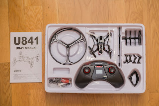 Uso de esta reviewSe permite utilizar esta review, ya sea copiando entero el artículo o partes de el, o referenciándola mediante un link, a cualquiera que lo desee, con la única condición de que se mantenga el autor y un enlace a la fuente original de esta review, y que se encuentra en mi blog. Para actualizaciones sobre este artículo, sugiero visitar el enlace mencionado anteriormente AgradecimientosA la tienda Fishingking (de Amazon), por enviarme una unidad de prueba de su producto Dron GoolRC UdiR/C U841con el que he escrito esta review Acuerdo de renunciaNo me hago responsable de ningún tipo de problema derivado de la implementación de los procedimientos o pautas indicadados en este artículo. Cualquier tipo de modificación que hagas en el dispositivo será bajo tu responsabilidad. IntroducciónDescripción introductoria del productoAunque esta es mi primera review de un Dron, lo cierto es que tengo algo de experiencia como usuario basada en un par de drones con los que me he introducido en este mundo, y aprovechando que la tienda me ha ofrecido la oportunidad de escribir un artículo sobre este dispositivo, me he querido lanzar a ver como se me da. Debo decir que personalmente tengo (o tenía) un cierto amor/odio hacia este tipo de dispositivos, amor por una parte, por que mi niño interior (y el de la mayoría que me lee, estoy seguro) disfruta mucho de dispositivos de radiocontrol (RC), y es mas, tengo un coche Traxxas con el que, cuando puedo, disfruto mucho "conduciendo" (¿o jugando?, aquí es donde no se como describir realmente), el tema es que los drones suponen un nivel mucho mas alto de destreza a la hora de utilizar, y por tanto al principio sobre todo resulta muy estresante dar tus primeros pasos. También es cierto que un auto/coche de RC se aprende con relativa facilidad, como para que lo utilice un niño pequeño (mi hijo desde los 5 años ya se desenvuelve bastante bien con mis coches, incluso corriendo con potencia), un Dron implica mucho stress/estrés para iniciarse con el, y que en general resulta muy frustrante para los mas pequeños (incluso para los mas adultos) Reitero y aclaro que no soy experto en el tema de drones, y que mis opiniones comentadas en este artículos se basan en mi experiencia como usuario "standard" y en opiniones, consejos y experiencias que he leído de mas gente con el uso de estos dispositivos. En esta ocasión presento el dron GoolRC UdiR/C U841 (GoolRC U841, para acortar), que es indicado para quienes quieran adentrarse en el mundo de los drones, ya que para su tamaño, tiene un peso que le hace muy estable para un vuelo tanto de interior como exterior (sin brisa, o con una leve) Entre sus funciones mas destacables se encuentran las siguientes: