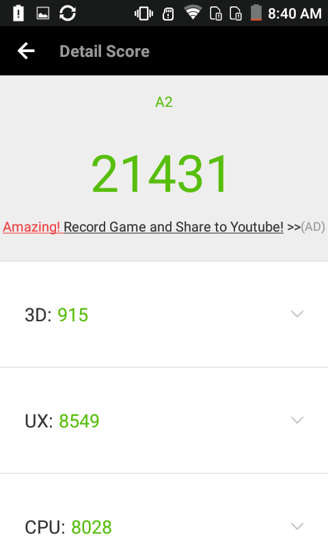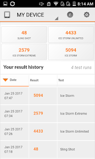 Información desde el propio dispositivoInformación obtenida mediante herramientas de software directamente desde el dispositivo.. Para tener una fuente fiable de información del sistema, he obtenido información desde el mismo dispositivo, ya sea desde la misma información que me proporciona el sistema Android (que generalmente es mas bien escueta), como utilizando otros programas que logran sacar mucho mas información, y de forma mas detallada, con lo que nos podemos hacer una idea general del dispositivo en su conjunto. CPU-Z Benchmarks Para quien no conozca estos programas, decir que un benchmark es una herramienta que ejecuta una prueba normalizada que se realiza en un dispositivo. Estas pruebas puntúan (generalmente ponderando varios resultados obtenidos) el desempeño de un dispositivo, de manera tal que el puntaje final puede servir para poder comparar de manera simple y directa el rendimiento general entre varios dispositivos. Existen muchos benchmarks, pero en mis pruebas generalmente utilizo los mas populares. Si tienes alguna sugerencia de un nuevo benchmark, déjame un comentario nombrando el programa específico y la razón, para poder contemplarlo en siguientes reviews. En la práctica, si quieres comparar este dispositivo (del cual estoy comentando en este articulo) con otro que veas por la web, o uno que tu mismo tengas, basta con que encuentres el resultado de alguno de los benchmarks y compararlo directamente con las capturas de pantalla que pongo aquí. Con esto, ya te puedes hacer una idea general de que tal van estas máquinas, comparando sus resultados. Nota acerca de los resultados de los benchmarks Hay que tener en cuenta que estos resultados son meramente referenciales. Es muy probable que si ejecutas estos benchmarks mas de una vez, tendrás mas de un resultado y muchas veces pueden variar de forma sensible. Esto puede suceder por muchos factores (temperatura del dispositivo, carga de memoria mientras se realiza la prueba, conexión a internet, cambios en los sensores como puede ser mientras se mueve el dispositivo, etc, etc). Por esta razón, en muchas ocasiones realizo 3 pruebas de cada benchmark y presento las que mejore puntuación obtiene (por que asumo que es la que mejores condiciones ha tenido para ejecutar dicha prueba) Condiciones de ejecución de los benchmarks Para la ejecución de estos benchmark, las condiciones del dispositivo son: