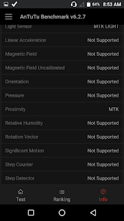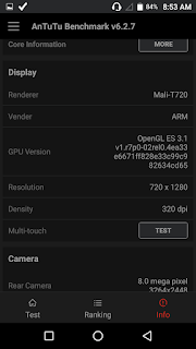 Información desde el propio dispositivoInformación obtenida mediante herramientas de software directamente desde el dispositivo..Para tener una fuente fiable de información del sistema, he obtenido información desde el mismo dispositivo, ya sea desde la misma información que me proporciona el sistema Android (que generalmente es mas bien escueta), como utilizando otros programas que logran sacar mucho mas información, y de forma mas detallada, con lo que nos podemos hacer una idea general del dispositivo en su conjunto. Antutu Benchmark System Info CPU-ZPara quien no conozca estos programas, decir que un benchmark es una herramienta que ejecuta una prueba normalizada que se realiza en un dispositivo. Estas pruebas puntúan (generalmente ponderando varios resultados obtenidos) el desempeño de un dispositivo, de manera tal que el puntaje final puede servir para poder comparar de manera simple y directa el rendimiento general entre varios dispositivos. Existen muchos benchmarks, pero en mis pruebas generalmente utilizo los mas populares. Si tienes alguna sugerencia de un nuevo benchmark, déjame un comentario nombrando el programa específico y la razón, para poder contemplarlo en siguientes reviews. En la práctica, si quieres comparar este dispositivo (del cual estoy comentando en este articulo) con otro que veas por la web, o uno que tu mismo tengas, basta con que encuentres el resultado de alguno de los benchmarks y compararlo directamente con las capturas de pantalla que pongo aquí. Con esto, ya te puedes hacer una idea general de que tal van estas máquinas, comparando sus resultados. Nota acerca de los resultados de los benchmarks Hay que tener en cuenta que estos resultados son meramente referenciales. Es muy probable que si ejecutas estos benchmarks mas de una vez, tendrás mas de un resultado y muchas veces pueden variar de forma sensible. Esto puede suceder por muchos factores (temperatura del dispositivo, carga de memoria mientras se realiza la prueba, conexión a internet, cambios en los sensores como puede ser mientras se mueve el dispositivo, etc, etc). Por esta razón, en muchas ocasiones realizo 3 pruebas de cada benchmark y presento las que mejore puntuación obtiene (por que asumo que es la que mejores condiciones ha tenido para ejecutar dicha prueba) Condiciones de ejecución de los benchmarks Para la ejecución de estos benchmark, las condiciones del dispositivo son: