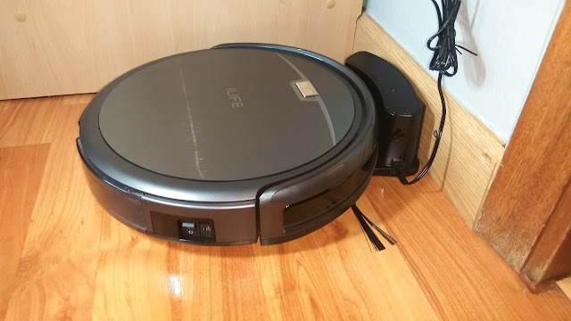 Robot Aspirador y Limpieza de Suelos ILIFE A4 ![]() Limpieza a fondo de suelos sin esfuerzo ninguno Sin duda una de las tareas que más tiempo lleva si la queremos realizar a fondo es la de la limpieza de los suelos y más concretamente esas zonas de difícil acceso, como son debajo de mesas, sillas, camas, y como no, los muebles de la cocina. Y aparte de eso, la limpieza con escoba no es nada recomendable, no porque no sea efectiva, pero no del todo, ya que lo que hacemos es más bien mover polvo de un lado para otro. ¿O no? En éstos casos viene en nuestra ayuda los ya famosos robots aspiradores, que tan sólo hay que dejarlos con su carga al completo y ellos solos se encargarán de darle un buen repaso a los suelos de toda la casa. Tras abrir la caja nos encontramos, o más bien comprobamos, lo organizado que viene el robot y sus accesorios, todo metido y encajado en una plataforma redonda con huecos para llevarlo todo bien sujeto y que no sufra deterioros. ![]() ![]() Dentro encontraremos lo siguiente: .- El robot aspirador .- Estación de carga .- Adaptador de corriente .- Mando a distancia .-Manual de instrucciones en varios idiomas, entre ellos el español .-Dos recambios de cepillos de cerda .- Filtro HEPA .- Cepillo de limpieza El manual es muy sencillo de comprender y en un rato ya habremos comprendido el uso del aspirador. La verdad es que yo me esperaba algo más complicado pero no, es sencillísimo de comprender. ![]() El mando a distancia, tras ponerle las pilas, que vienen suministradas, y habiendo leído previamente el manual no tendrá ningún secreto. ![]() Los recambios, tanto de los cepillos de cerdas como del filtro HEPA son realmente fáciles de cambiar. ![]() Los cepillos de cerdas largas tan sólo necesitaremos un destornillador de estrella para quitarlos y poder cambiarlos. ![]() ![]() Y el filtro HEPA lo mismo. ![]() Tan sólo tendremos que quitar el depósito donde se acumulará la suciedad pulsando en una pestaña en la parte trasera del mismo. ![]() Después lo abriremos y encontraremos un filtro microperforado y otro más de espuma, los sacaremos los dos y ya veremos el filtro HEPA. ![]() Lo que no trae de repuesto es el cepillo tubular con pequeñas cerdas que se encuentra al lado del depósito, por lo que a la larga, tras desgastarse las cerdas tendremos que comprar uno. Pero no hay problema, ya que la propia marca puede suministrarlo. ![]() Su desmontaje también es muy sencillo. Tras liberar las pestañas y quitar el marco amarillo tan sólo hay que estirar para arriba del lateral derecho y ya lo tendremos fuera. ![]() Para hacer una limpieza tanto del depósito como de las cerdas (para los pelos que se quedan enredados en ellas) contamos con un práctico cepillo alargado en el cual en un extremo contamos con un cepillo suave y en el otro con unas púas tipo peine con la punta curvada ![]() ![]() ![]() La estación de carga tan sólo la tendremos que dejar enchufada para que el robot, una vez acabado el programa o se le vallan a agotar la batería vuelva él sólo a ella. ![]() El botón superior del robot es un buen indicador del estado de la batería ya que cuando está completamente cargada o en modo limpieza lo veremos en verde fijo, en verde parpadeando si se encuentra en modo selección, y pasará a naranja en modo limpieza. ![]() ![]() El tiempo de carga, según las especificaciones, es de unos 300 minutos. Yo no me he quedado a mirarlo, la verdad. ![]() En cuanto al robot y su forma de trabajar no se le puede pedir más. Hace su trabajo a conciencia. Tras ponerlo en marcha pulsando la tecla que se encuentra en un lateral ya podremos o bien ponerlo en marcha pulsando la tecla que se encuentra en su parte superior y que empiece a trabajar o bien ponerle una hora determinada para que lo haga mediante el mando a distancia. ![]() En ese mando podremos también indicarle los modos de trabajo que queremos que realice, que son los siguientes: ![]() Pulsando en la tecla CLEAN (si no lo queremos hacer en el propio robot) comenzará igualmente a limpiar. Con el botón PLAN programaremos una hora en concreto para su funcionamiento. Con MAX lo que haremos será indicarle que haga una limpieza más a fondo. Eso sí, eso se traduce en más gasto de batería. Con el botón BORDES (azul a la derecha) nos hará un recorrido de todo el borde de la casa sin salirse de él. Botón HOME (azul central) volverá a su estación de carga. ![]() Botón SPOT (azul a la izquierda) nos limpiará más a fondo una zona determinada, pero tendremos que ponerlo encima de esa zona para que realice esa acción. Botones de dirección: podremos hacer que el robot circule por donde nosotros le vallamos indicando mediante los mandos de dirección. Podremos pausarlo en el momento que queramos para poder cambiar de programa tan sólo pulsando la tecla superior de robot o el botón de CLEAN. Otra función interesante es la de que no hay peligro si lo utilizamos en un domicilio donde haya escaleras ya que en cuando llega al borde se detiene en seco y cambia de dirección. Puede verse con más detalle en el vídeo. Y en cuanto a los obstáculos los salva o bien detectando el objeto mediante sus sensores o tras golpearse con su parachoques. ![]() Podría pasar que en algún momento encontrara un objeto que no le dejara continuar o que le atasque las ruedas, por lo que entonces el botón superior se iluminará en rojo y emitirá unos pitidos. La verdad es que tras ponerlo en marcha y adaptarse al entorno (digo lo de adaptarse ya que tras la primera puesta en marcha se golpeaba al principio fuera lo que fuera lo que tenía delante. Yo pensaba que no detectaba nada) y tras unos minutos de funcionamiento el resultado ha sido lo que esperaba de él. Eso sí, lo negro le cuesta “verlo” pero nada que no se solvente con su parachoques, que tras golpear ligeramente y el parachoques detectar que hay algo delante al instante cambia de trayectoria. Y si se mete debajo de la mesa donde alrededor hay 